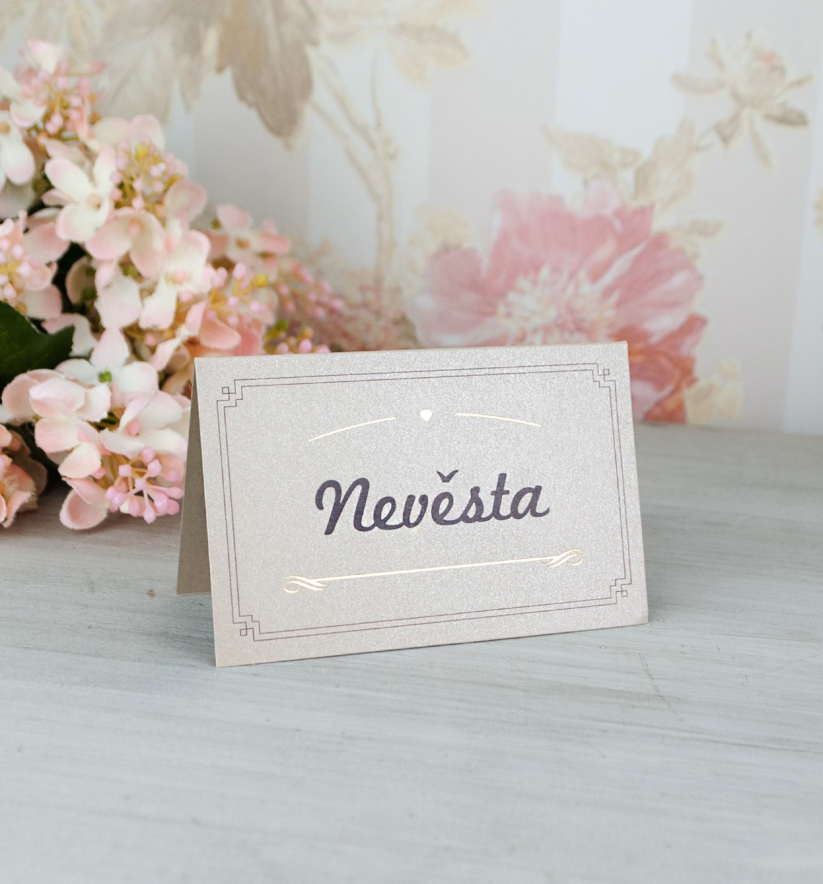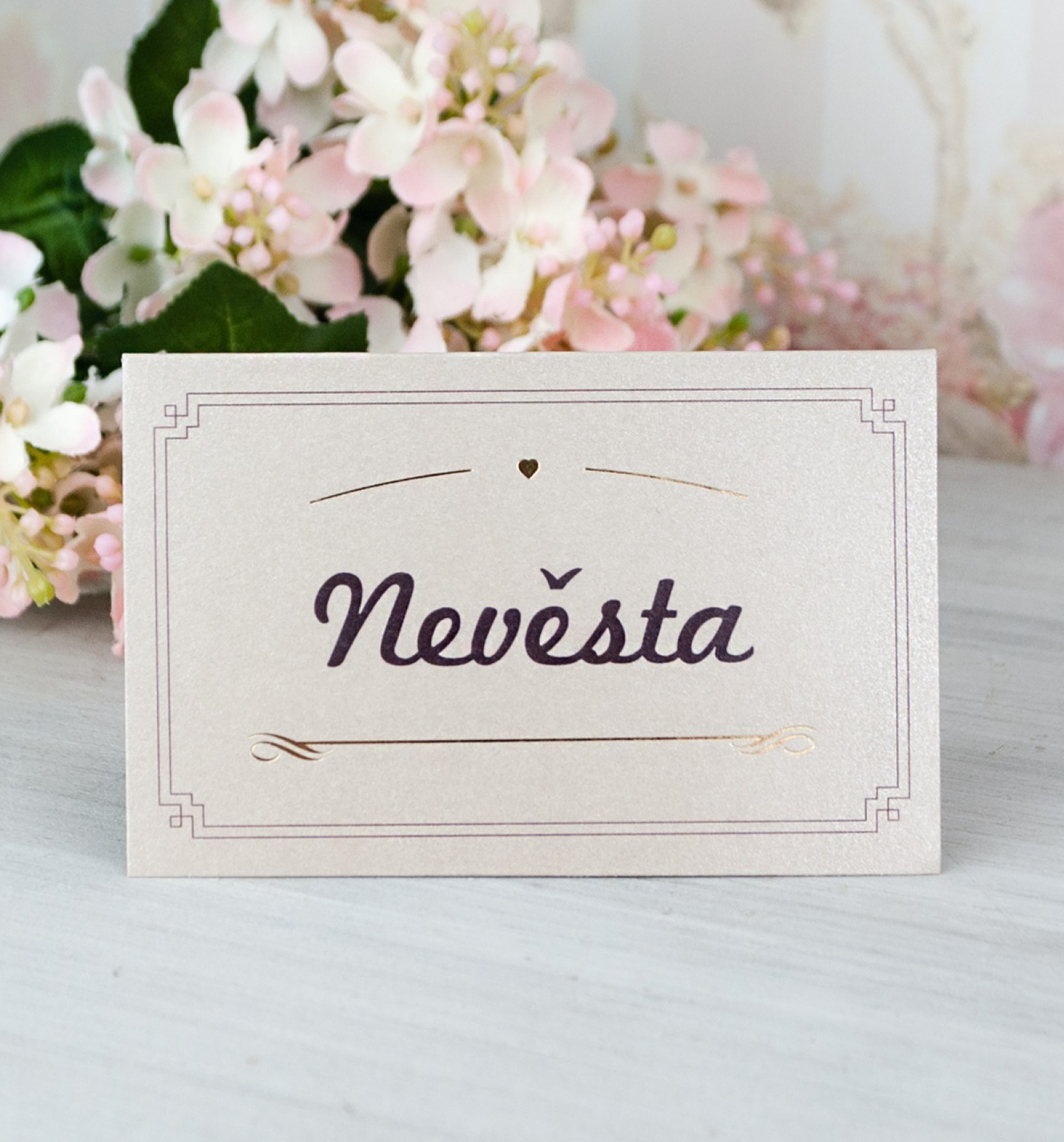 Jmenovku ve tvaru tzv. „áčka“ jsme vyrobili do setu se svatebním oznámení. Použili jsme perleťový papír pískové barvy a design jsme vytvořili kombinací lesklé ražby a digitálního tisku. Pro dodržení Více…